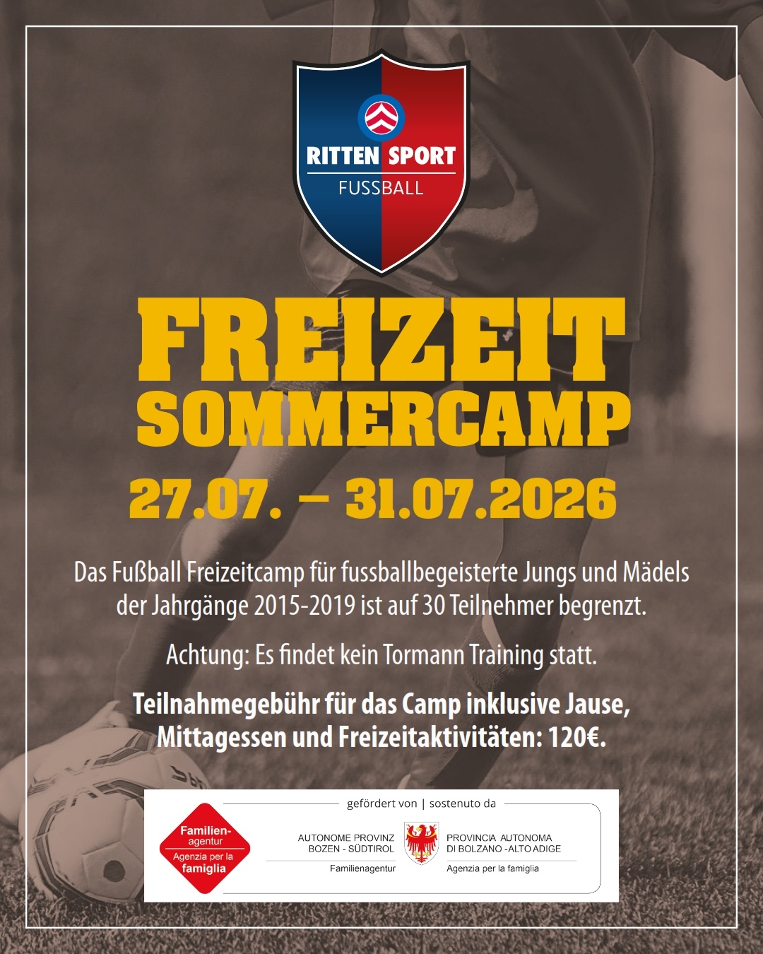 Das Camp ist auf max. 40 Teilnehmer begrenzt und nur Rittner Fußballer*innen vorbehalten!