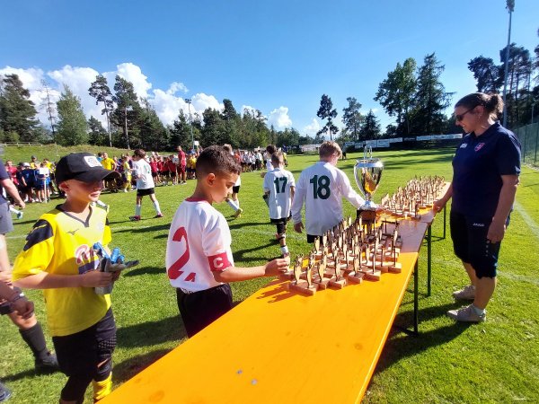 Ausgezeichnet wurde wieder ein Dream-Team und jeweils die beste Spieler/innen auf den jeweiligen Positionen. Jedes Kind durfte am Ende jedoch einen kleinen, wunderschönen Champions League Pokal aus Holz, gesponsert von der Raika Ritten und hergestellt von den Mitarbeiter/innen der geschützten Werkstätte GWB Sozialgenossenschaft, als Erinnerung mit nach Hause nehmen.