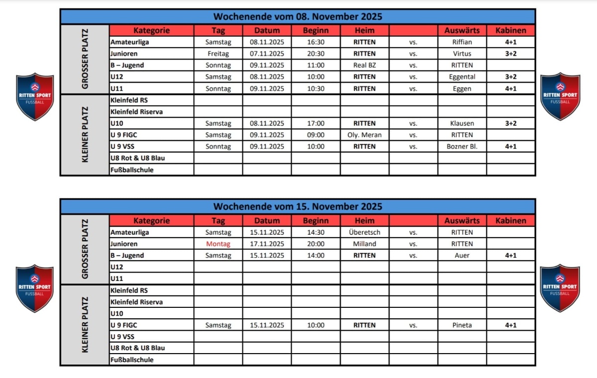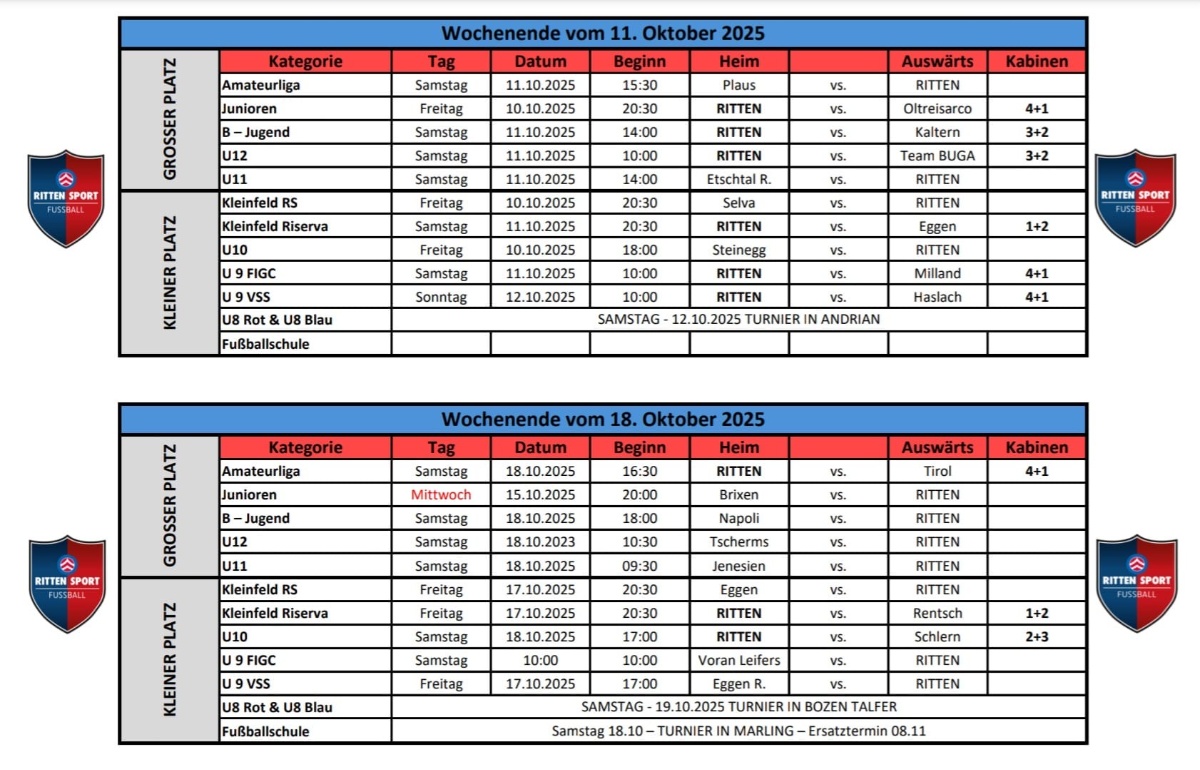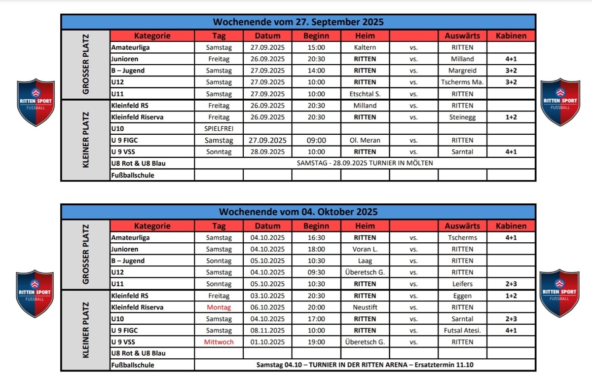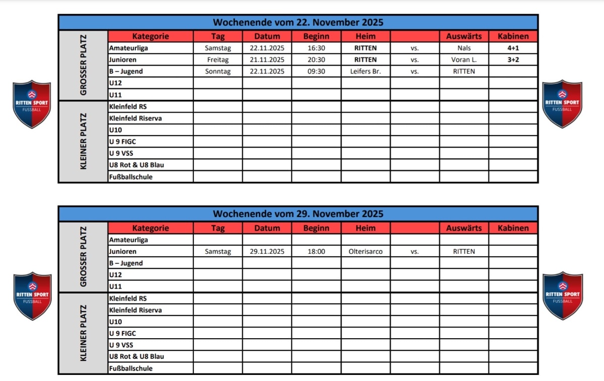 Turnier- und Trainingsplan