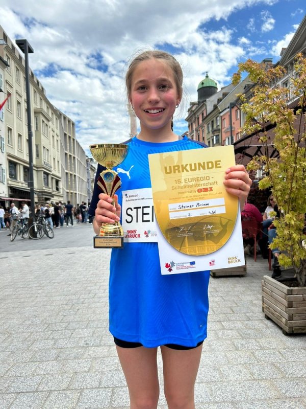 Bei den Euregio Schulmeisterschaften treten die jeweils besten 3 SchülerInnen der Bezirksmeisterschaften aus Südtirol, Tirol und Trentino an. Miriam hat sich hier mit phänomenalen 4.36m den 2. Platz erkämpft!